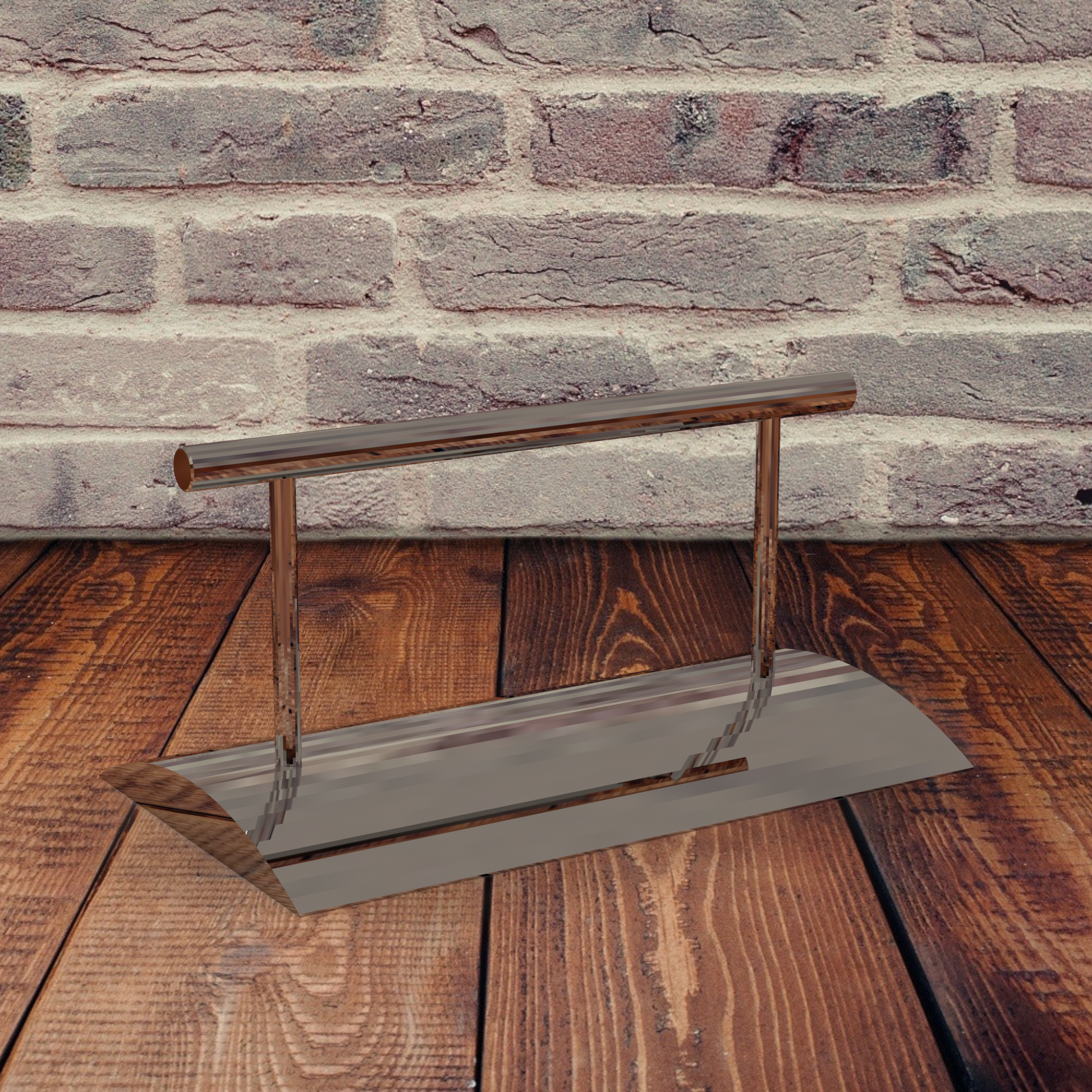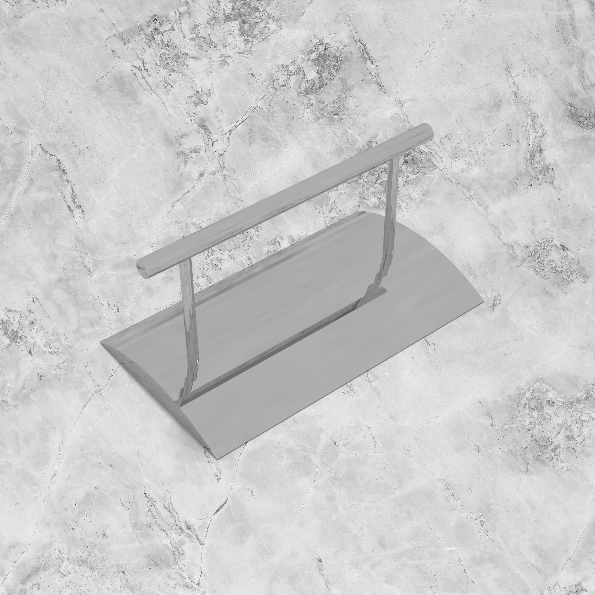 Metal chromed footrest with arched base.