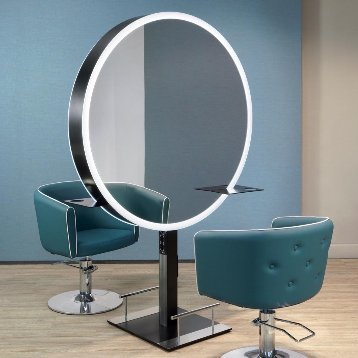 For a brighter and more impressive ambience, the Grace double-sided LED mirror is the perfect show-stopper piece for any salon interior.