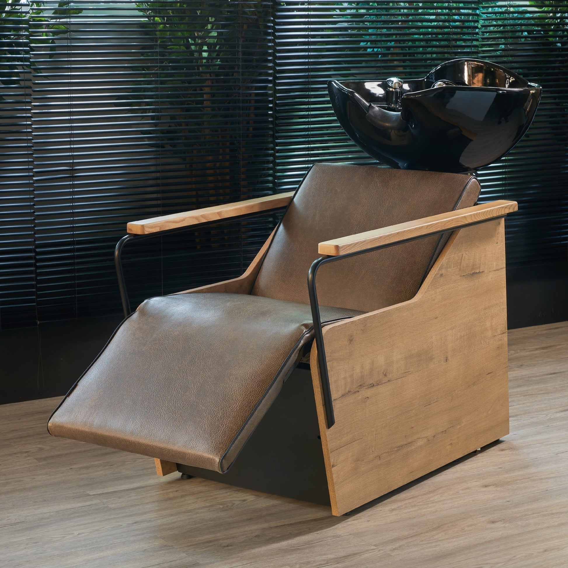 The I Love NY wash unit, with a large tilting basin available in black or white, features a superbly comfortable padded seat and ergonomics conducive to client relaxation.