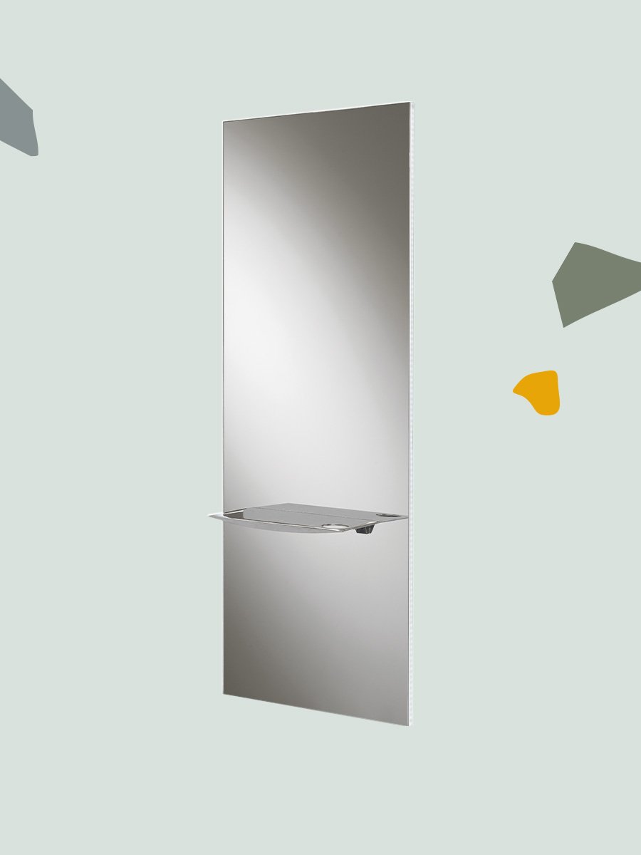 The full-length mirror is enhanced by LED lighting and it also incorporates a shelf with hairdryer holder.