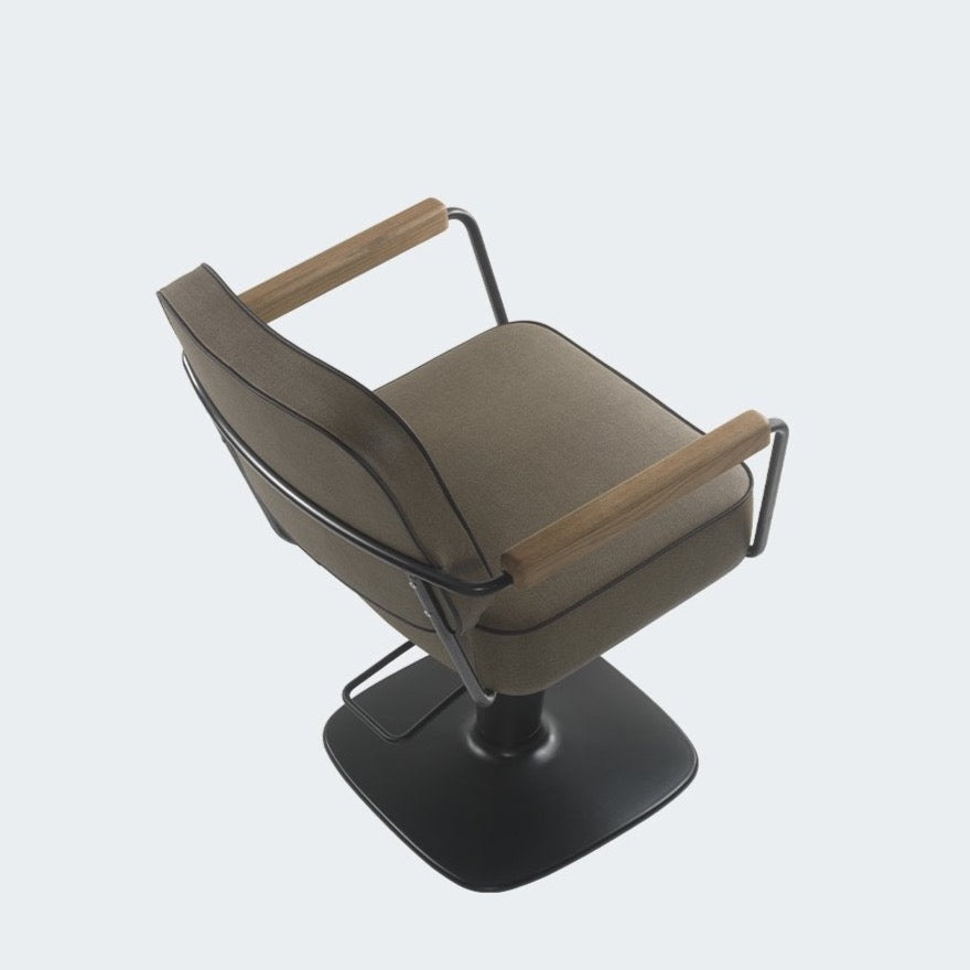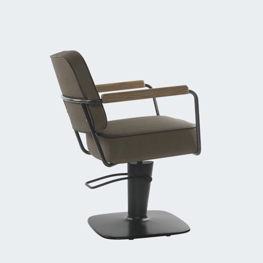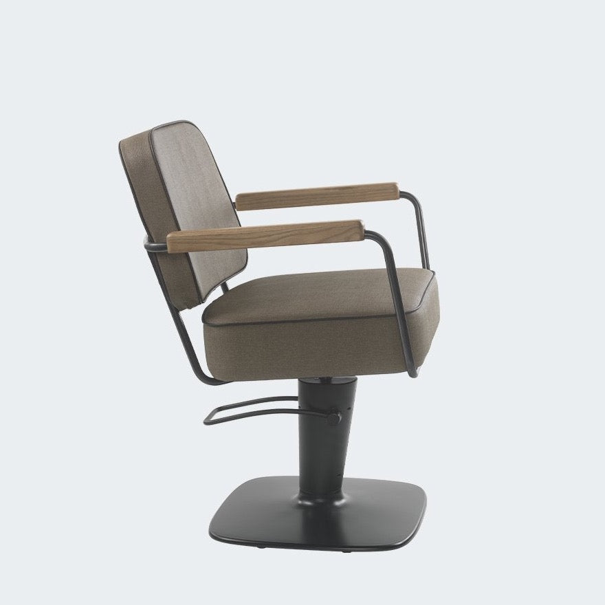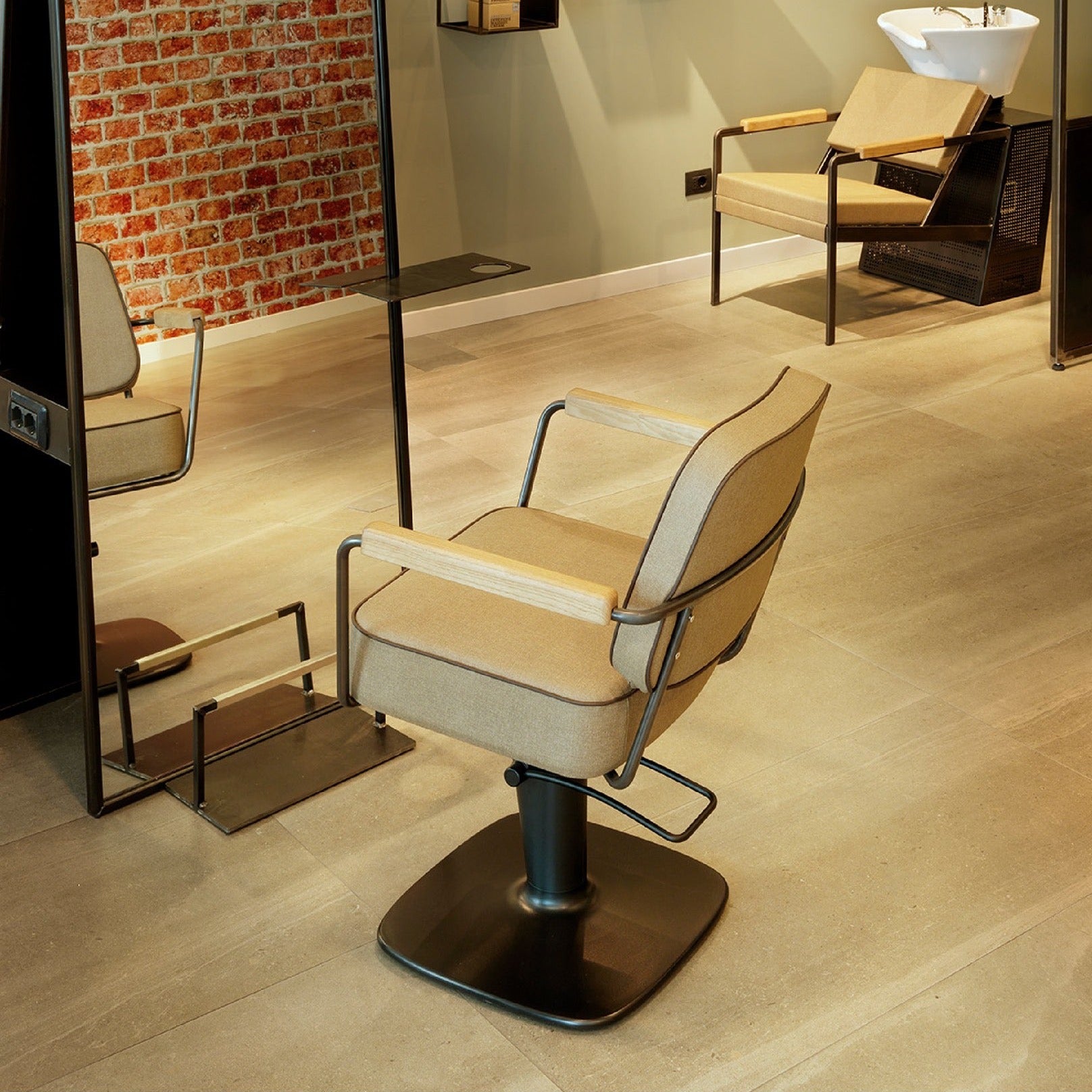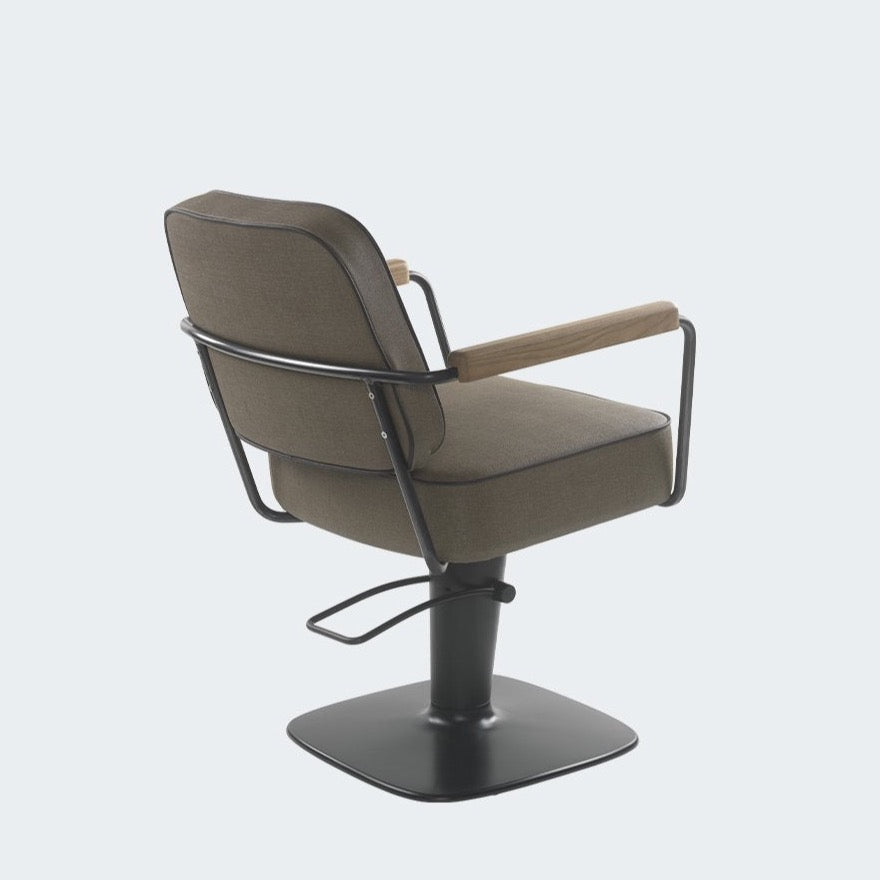 The Liberty chair is made from environmentally sustainable materials and packed with innovation and quality. Its vintage aesthetic, enhanced by wooden armrests and a padded seat for superior comfort, complete with contrast piping, make this uniquely stylish chair perfect for every salon.