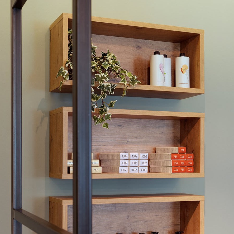 Give your salon the perfect finishing touch with the Melrose modular wall display unit of the New York New York line. This versatile and practical accessory made of wood-effect laminate brings timeless charm to the workspace.