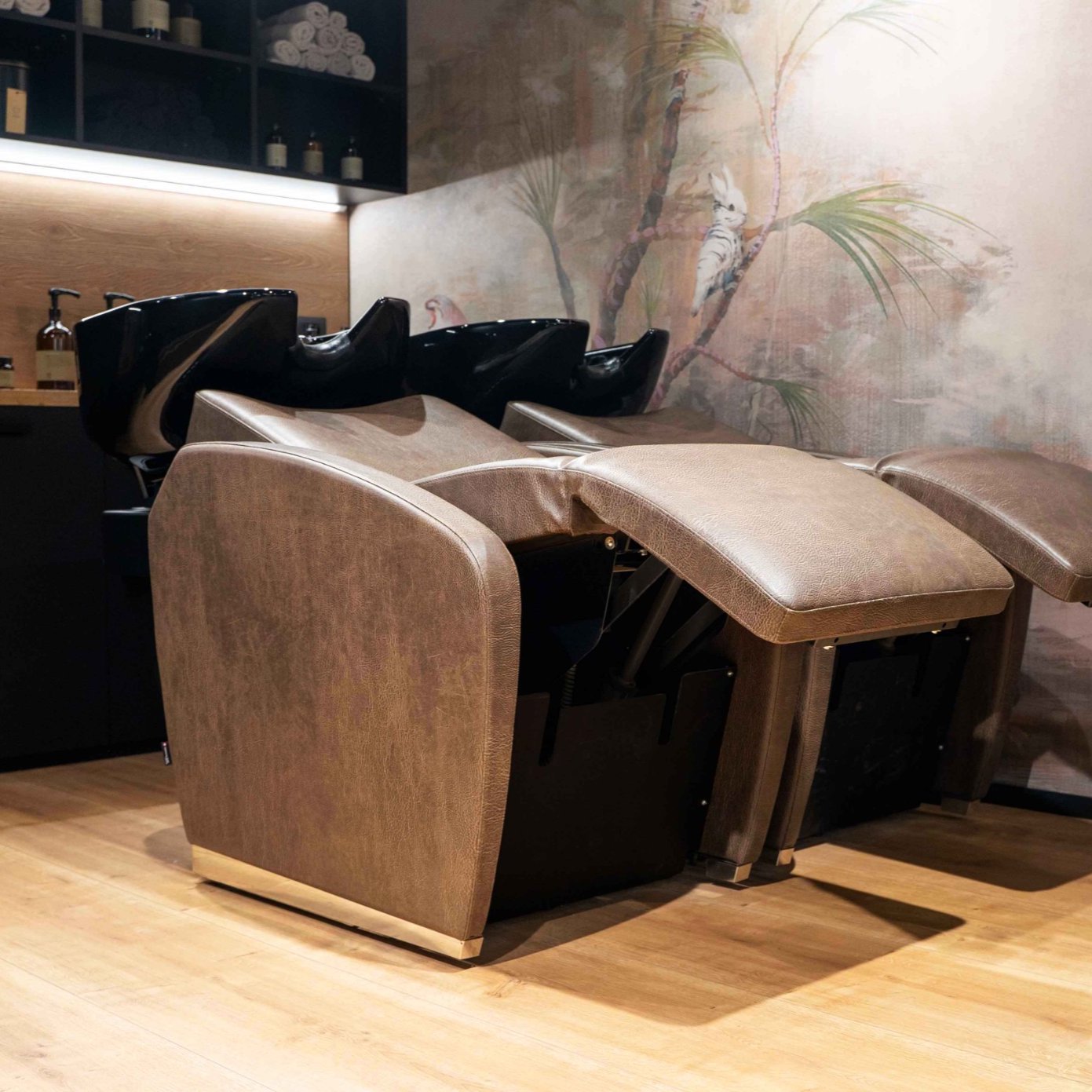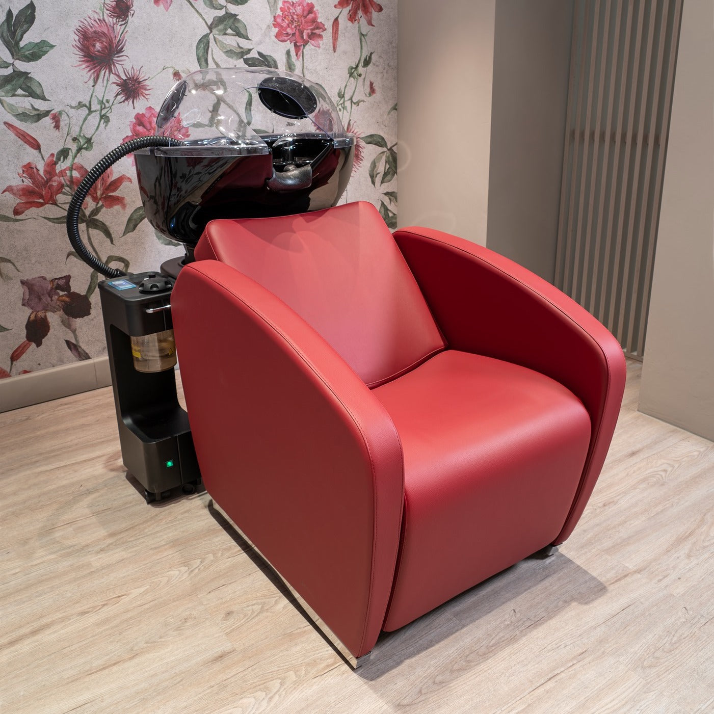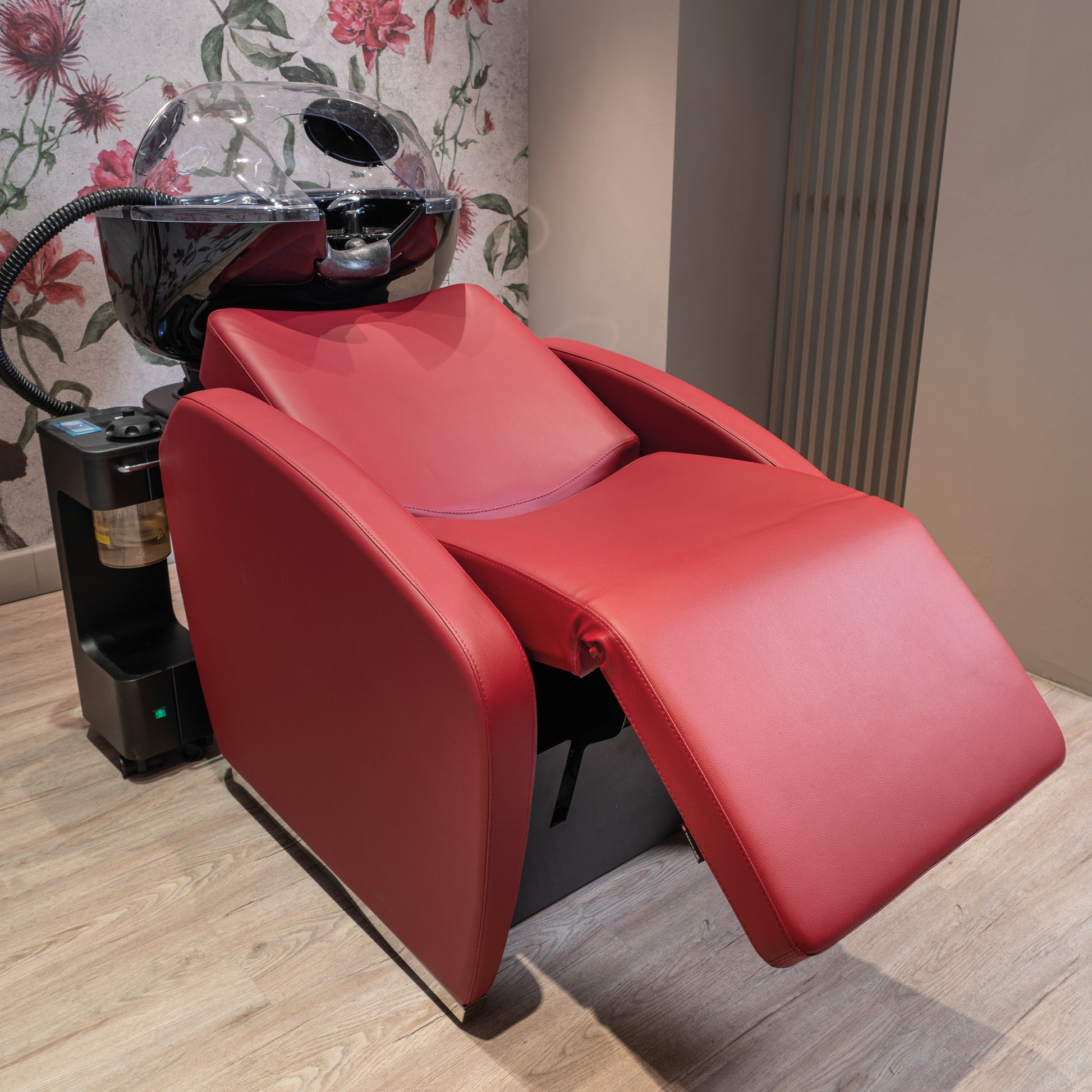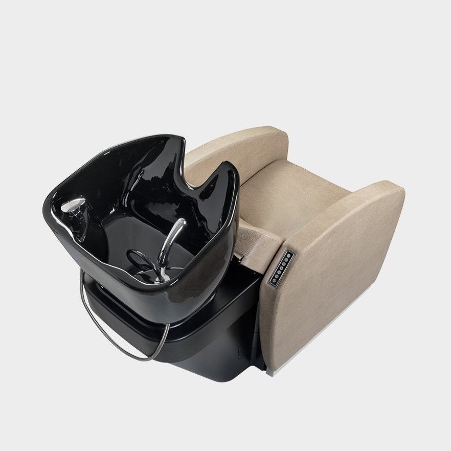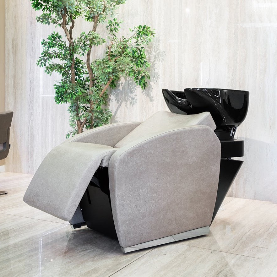 The New Almond wash unit combines incredible design with a unique level of comfort. The synchronous movements of the various parts of the chair gently take the client to a reclining position for total relaxation.