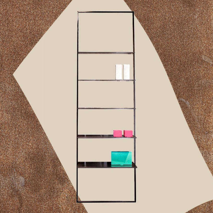 Black painted display with 5 iron shelves with calamine, coated with translucent painting.
